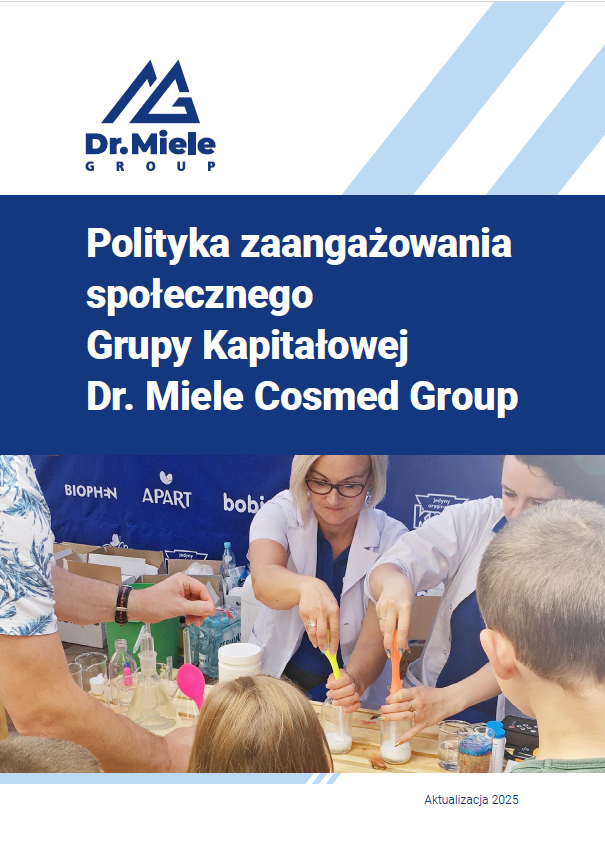Każdy z dokumentów definiuje najważniejszy cel, dla którego powstała Polityka, odnosi się do dokumentów zewnętrznych, które stanowiły dla nas wytyczne. Mówi też o najważniejszych kierunkach podejścia do tematu i wyznacza struktury zarządzania tematem i jego sprawozdawczości. Co niezwykle istotne, przyjęte w Dr. Miele Cosmed Group S.A. (wcześniej Global Cosmed S.A.) powstały w ramach prac Grup roboczych złożonych z przedstawicieli różnych działów, w wyniku analizy najlepszych rynkowych praktyk, wymogów prawa, wytycznych instytucji standaryzacyjnych i stanowiących literę prawa.